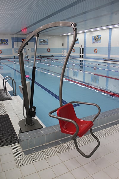 Подъемники для бассейна выполнены из прочного водостойкого материала, устойчивого к коррозии. Для изготовления сидений применяется гигиенический пластик. Металлические детали выполняются из нержавеющей стали.