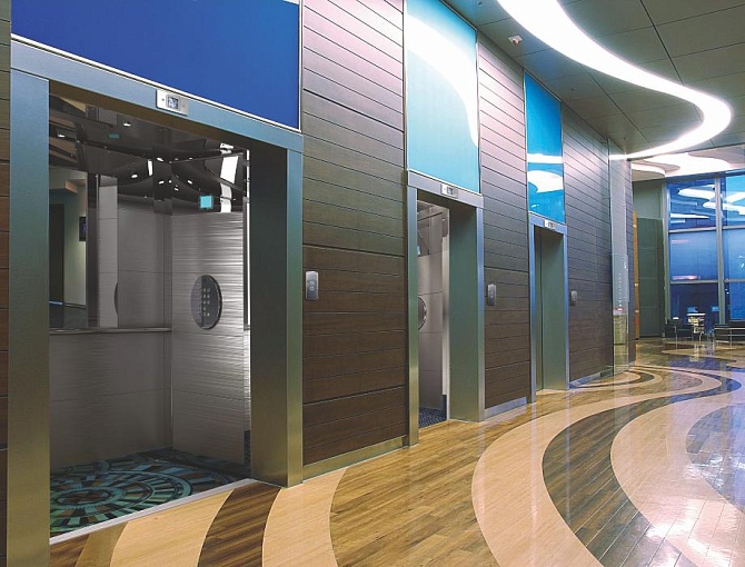 - комфортабельная лифтовая кабина (элементы из нержавеющей стали, вентиляторы, дизайнерская отделка, LCD-табло, зеркала);